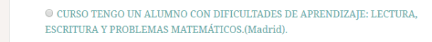 Después debes señalar el curso «TENGO UN ALUMNO CON DIFICULTADES DE APRENDIZAJE».