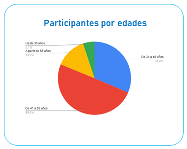 El 45 % eráis profesoras de Educación Primaria, el 22 % de Infantil, el 11 % de ESO y el resto de otras etapas.