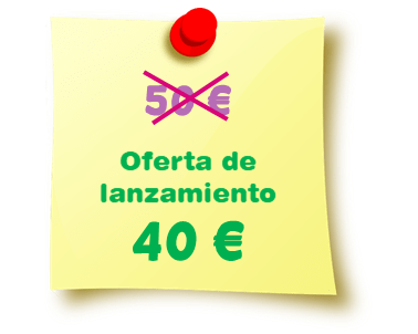 - Aunque el precio del taller es de cincuenta euros, vamos a realizar un descuento especial de lanzamiento de 40 euros, o la moneda equivalente de tu país.