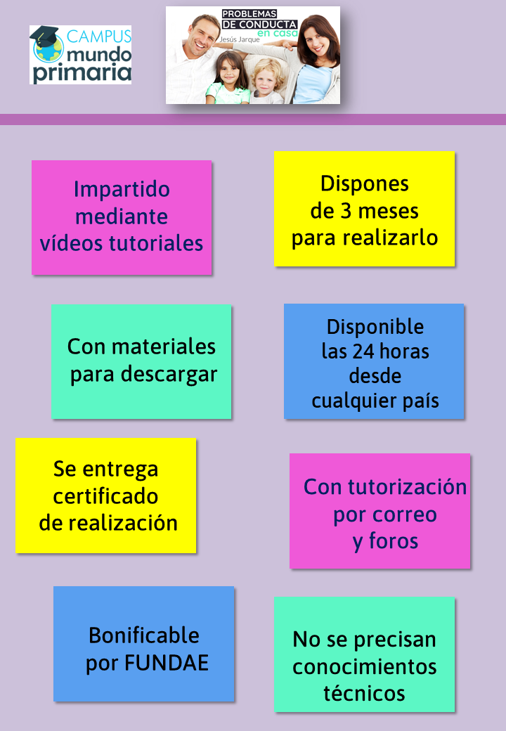 Ya está abierta una nueva convocatoria del curso on line Problemas de conducta en casa. Un curso que puedes realizar a tu ritmo, en tus ratos libres, ya que dispones de hasta 3 meses para realizarlo, tiempo más que suficiente.