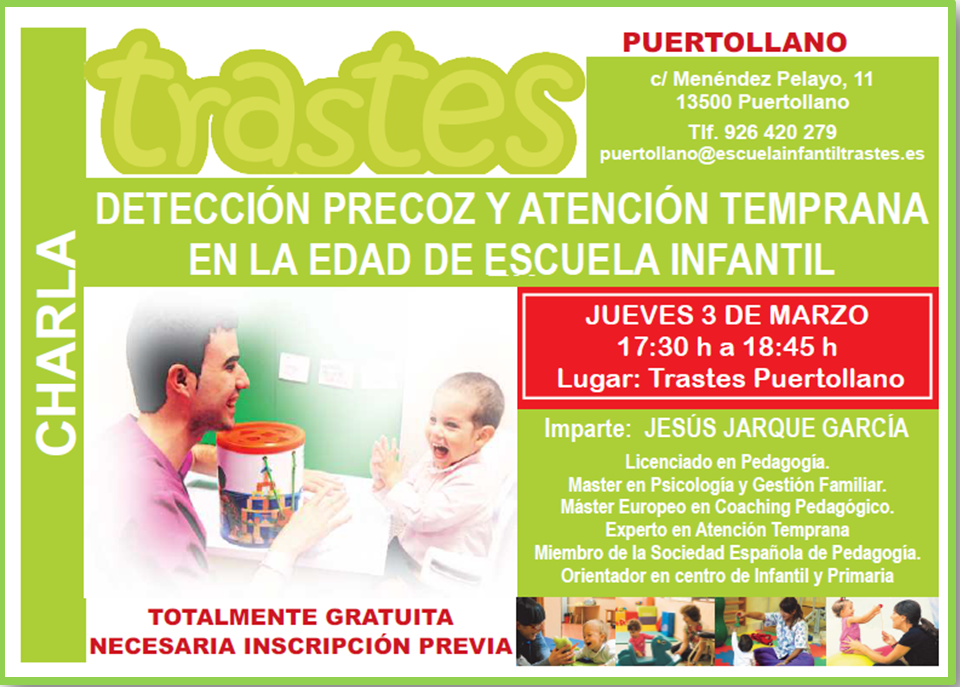 El próximo jueves 3 de marzo, voy a impartir una charla-coloquio titulada «Detección Precoz y Atención Temprana en la edad de la Escuela Infantil».